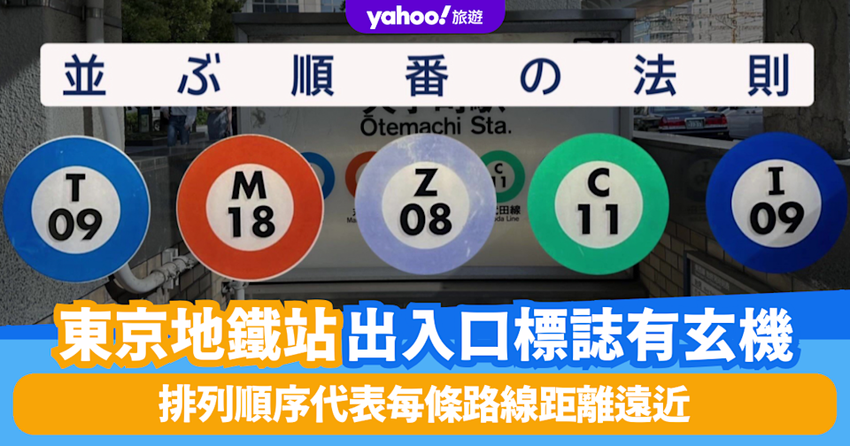 東京不少車站都有多條地鐵線交匯,出入口數非常多。如東京地鐵樞紐之一的大手町站,便匯集5條路線,車站出入口更超過40個,旅客很容易在地下通道迷路。其實只要抬頭留意出入口上方的路線標誌,就能找到判斷方向的小技巧。每個出入口會列出該站經過的所有路線,包括彩色圓形的路線代號及名稱,而這些圖示並非隨意排列。根據東京Metro的說法,一般而言會按路線的近至遠,由左至右排列路線標誌,即距離該出入口較近的路線會放在左側。