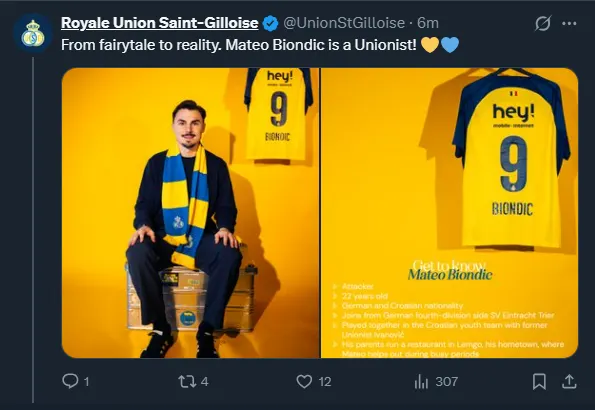 The goal-getter was trained at clubs including Hannover 96, Schalke 04, and SC Paderborn, but initially couldn’t gain a foothold in professional football. After a two-year loan, Biondic made a permanent move from SC Verl to Trier last summer. Now, just half a year later, he’s already moving on to Belgium.