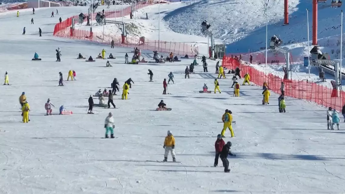 Since Saturday, large numbers of children have flocked to ski resorts in Altay, including the General Mountain International Ski Resort, accompanied by family members.