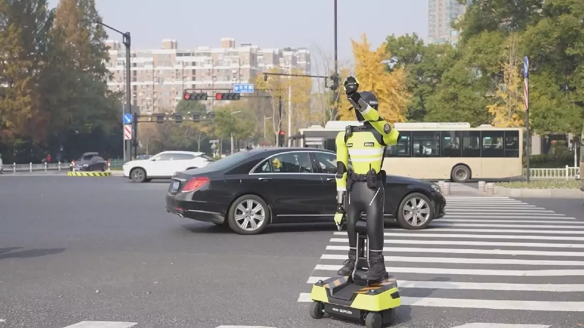 A futuristic robot traffic officer has been deployed on duty in the eastern Chinese tech hub of Hangzhou City, directing pedestrians and vehicles using artificial intelligence-powered operations.