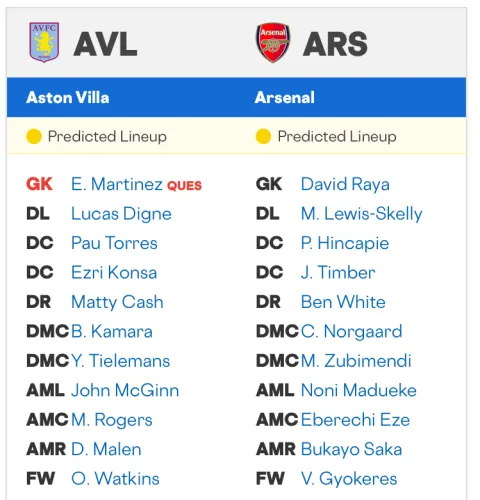 This preview covers predicted lineups, injury news, head-to-head history, betting odds and a score prediction for Saturday’s Aston Villa vs. Arsenal match.