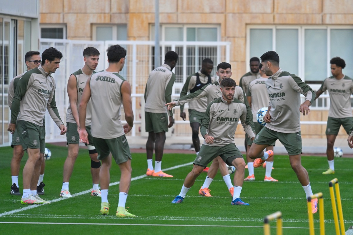 Villarreal players attend a training session on the eve of the UEFA Champions League, League Phase – Matchday 3, football match between Villarreal CF and Manchester City at the Ciudad Deportiva Villarreal training grounds in Vila-Real, on Oct 20, 2025. (PHOTO / AFP)