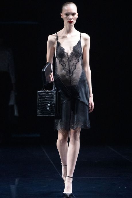 Anderson had asked the British television journalist Adam Curtis to make a compact history of the house, and Luca Guadagnino, who is a friend of Anderson’s, had designed the set so that the audience would be looking up at the screens. Indeed, Curtis’s imagery, his depiction of the brand’s former designers and the overly theatrical fashion world, would be bearing down on us. It would feel like pressure. And it did, with a horror-movie flavor mingled with a pressure that is unique to the Paris high-fashion scene. In his propulsive editing style, Curtis had included movie clips of knives and blood, as well as documentary footage of editors at a John Galliano show being nearly crushed.