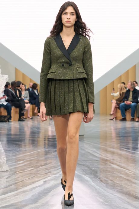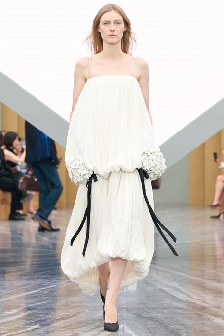 And I liked the fact that Anderson offered so much sportswear, like the crisp, dark checked cotton shirts with stock ties and matching minis that opened the show, keeping the style on the French side of chic. My only beef with the collection is that Anderson’s shrunken Bar jacket and flared mini tripped into Marc Jacobs’s distorted doll territory, as did a white gown with exaggerated mounds at the hips, like funny paniers. Still, the rethinking of what Dior means opens the door further for Anderson and his collaborators. Watching the show, I was actually thinking he could push things further. In due time.