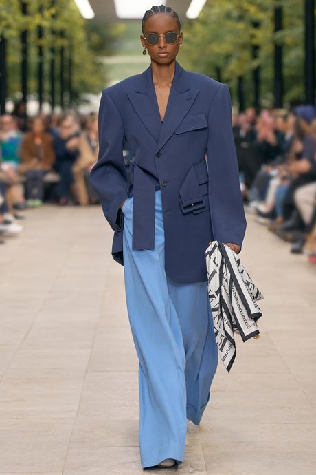 And he does deft things with silk scarf prints, as draped tops with a swag or to beef up the lining of a dark trench coat. Also striking, and different in the fashion sea, was a wide-belted tailored jacket in navy with blue trousers — nearly jeans but not.