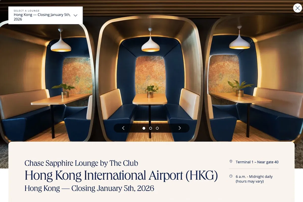So there’s now an interesting update — Chase’s website has been updated to indicate that the Chase Sapphire Lounge Hong Kong will be closing on January 5, 2026.