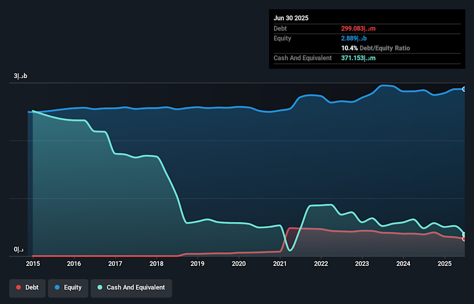 Amanat Holdings, a smaller player in the Middle East market, has shown impressive performance with earnings growing 48.4% last year, outpacing the industry average of 12.8%. Despite a debt-to-equity ratio increase from 3% to 9.7% over five years, its financial health remains robust as it holds more cash than total debt and covers interest payments comfortably. The company reported AED176.99 million net income for 2025, up from AED115.84 million previously; however, this was partly due to a non-recurring gain of AED68.3 million impacting results. With revenue expected to grow by 15.74% annually despite forecasted earnings decline, Amanat continues to offer intriguing prospects in its sector.