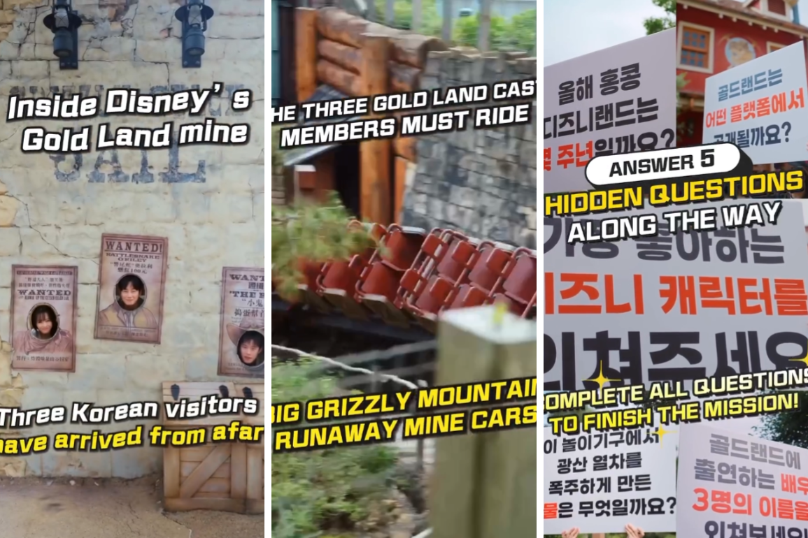 The Korean stars were challenged to ride Big Grizzly Mountain Runaway Mine Cars and answer five hidden questions along the way to complete the mission.