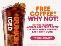 Dunkin’ is giving away one million free hot or iced coffees on Monday, December 29.