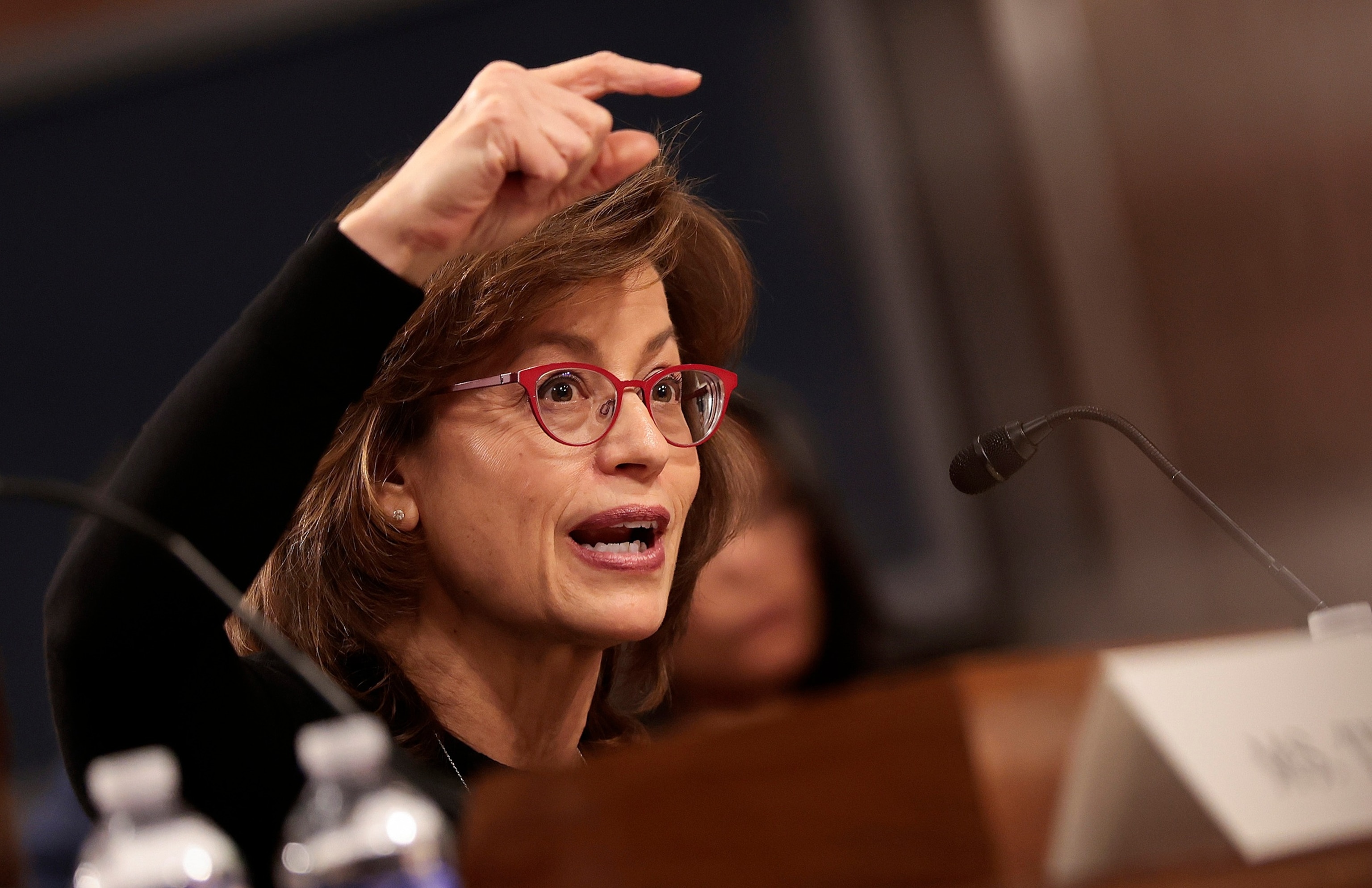 Anna M. Gomez, commissioner of the Federal Communications Commission speaks at the Senate Commerce, Science, and Transportation Committee oversight hearing in the U.S. Capitol Building, December 17, 2025 in Washington.