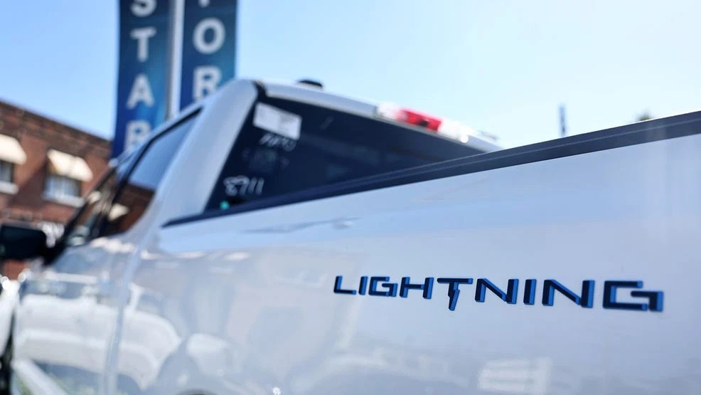 FILE – A Ford F-150 Lightning electric pickup truck is displayed for sale at a Ford dealership on August 21, 2024, in Glendale, California. (Photo by Mario Tama/Getty Images)