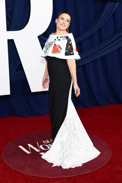 Her gown featured drawings from children in Gaza as a reminder of the ongoing hunger crisis in the region.