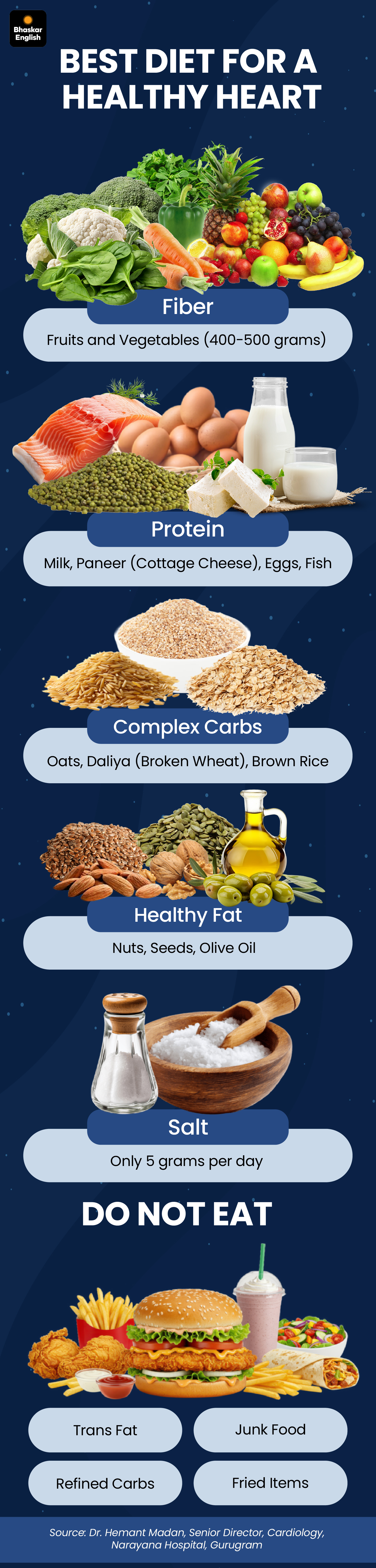 Good sleep alone is not enough. The food on your plate also affects heart health. According to a new study, extra fiber and vegetables can reduce the risk of heart attack. Make these changes to your diet for a healthy heart-