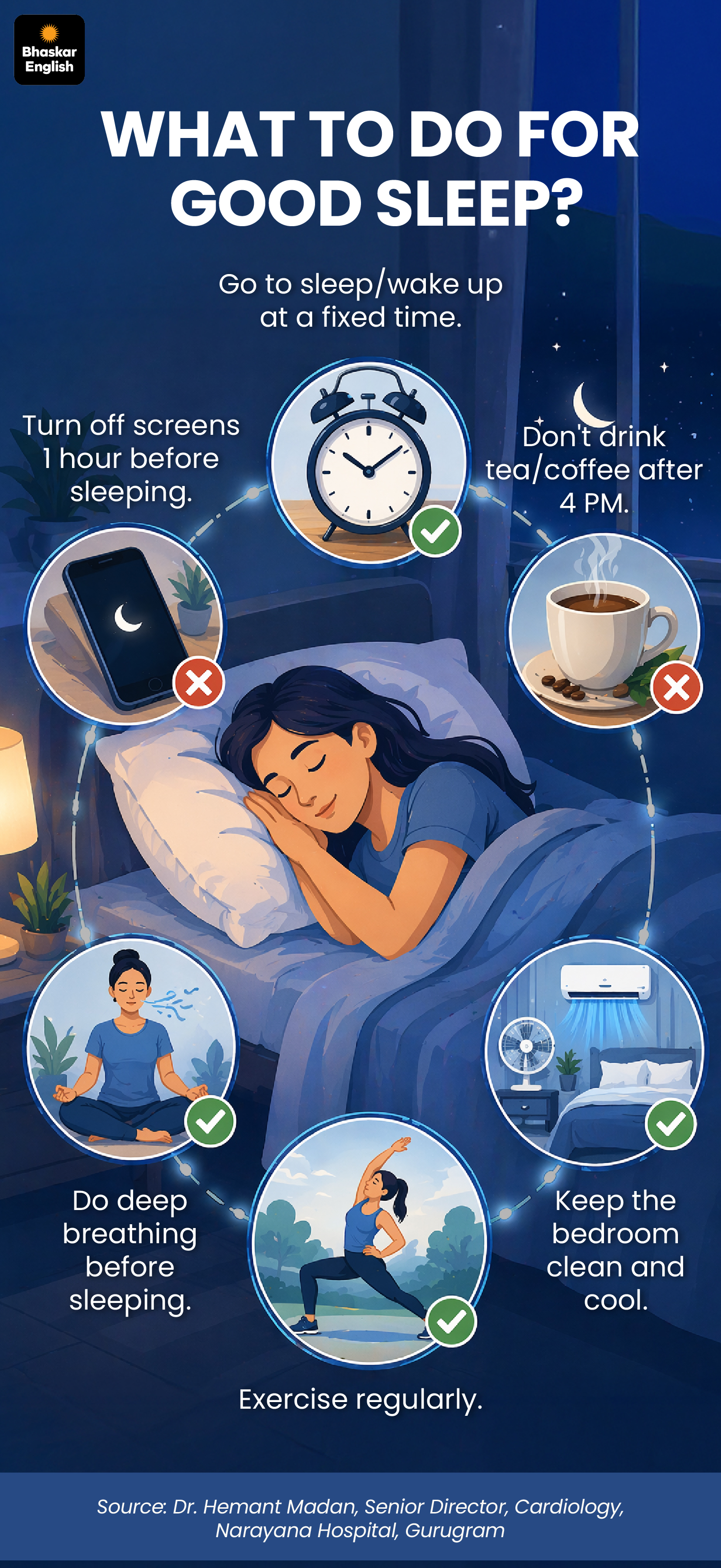Along with the ‘duration’ of sleep, ‘quality’ is also important. If you spend 8 hours in bed, but your sleep is repeatedly interrupted, your heart does not get rest. To get deep sleep, it is important to follow a ‘sleep hygiene’ routine-