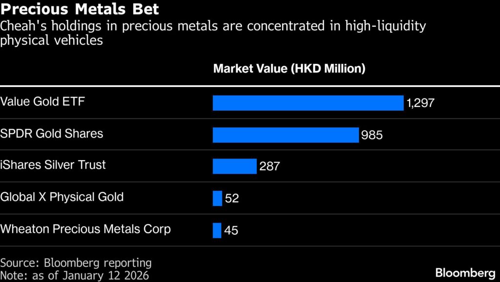 The seed capital for his bulk gold buying came from a move in 2015, when he reduced his shareholding in Value Partners just before a major market correction. Dissatisfied with Western vaults after he began buying in 2008, Cheah launched the Value Gold ETF in 2010 to store physical bullion at the Hong Kong airport. He remains the fund’s largest holder with a stake worth HK$1.3 billion ($167 million), according to people familiar with the matter.