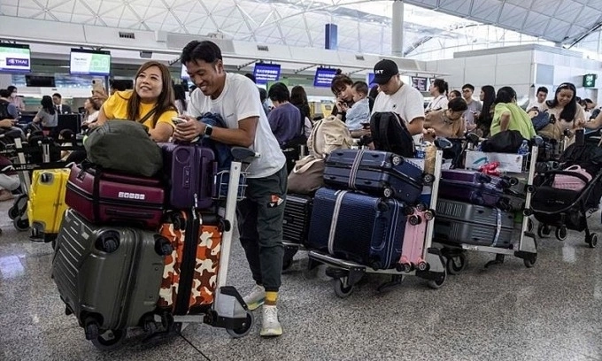 Passengers wait to be checked-in at Hong Kong International Airport. Photo by AFP