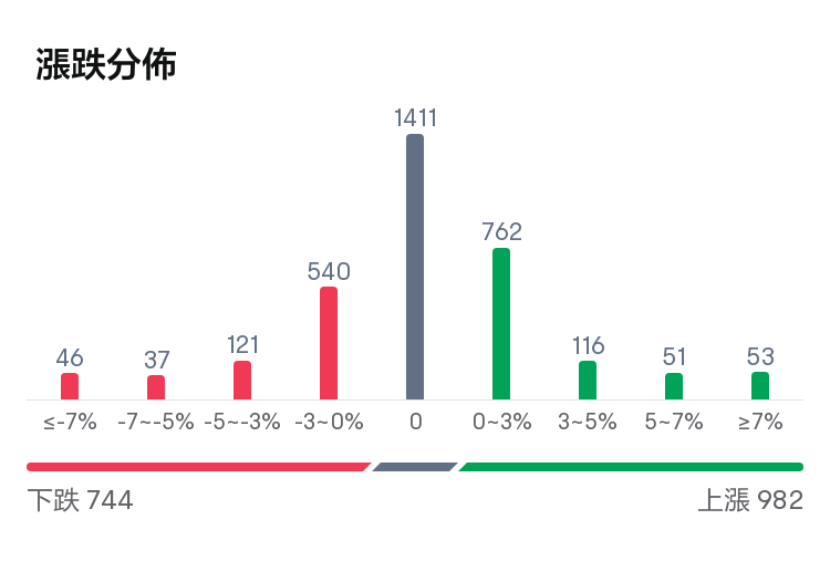 As of the midday close, there were 982 Hong Kong stocks rising, 744 falling, and 1411 remaining unchanged.