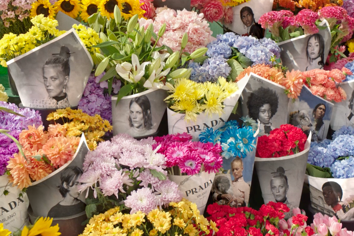 Verderi’s first Prada campaign, in 2019, appeared on paper wrapped around flowers distributed to several hundred florists and some delis in big cities. That season, Miuccia Prada embraced humble fabrics in sweet tones, and Verderi wanted to show the brand’s connection with the real world. “So how do you do that without saying that? Let’s actually try to do a campaign that you stumble on, not one that you need to look for,” he said. “Where do you find it? You find it at the intersection of everyday life.” With people inspired to share their Prada bouquets, the campaign went viral, and more than one company even asked if he would do the same campaign for them. (He said “no.”)