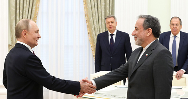 Winning smile: Russia’s president Vladimir Putin (left) welcomes Iranian foreign minister Abbas Araghchi to Moscow, 23 June 2025