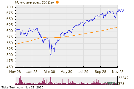 Looking today at week-over-week shares outstanding changes among the universe of ETFs covered at ETF Channel, one standout is the iShares Core S&P 500 ETF (Symbol: IVV) where we have detected an approximate $4.1 billion dollar inflow — that’s a 0.6% increase week over week in outstanding units (from 1,061,000,000 to 1,067,050,000). Among the largest underlying components of IVV, in trading today NVIDIA Corp (Symbol: NVDA) is off about 1.5%, Apple Inc (Symbol: AAPL) is down about 0.3%, and Microsoft Corporation (Symbol: MSFT) is up by about 1.1%. For a complete list of holdings, visit the IVV Holdings page »