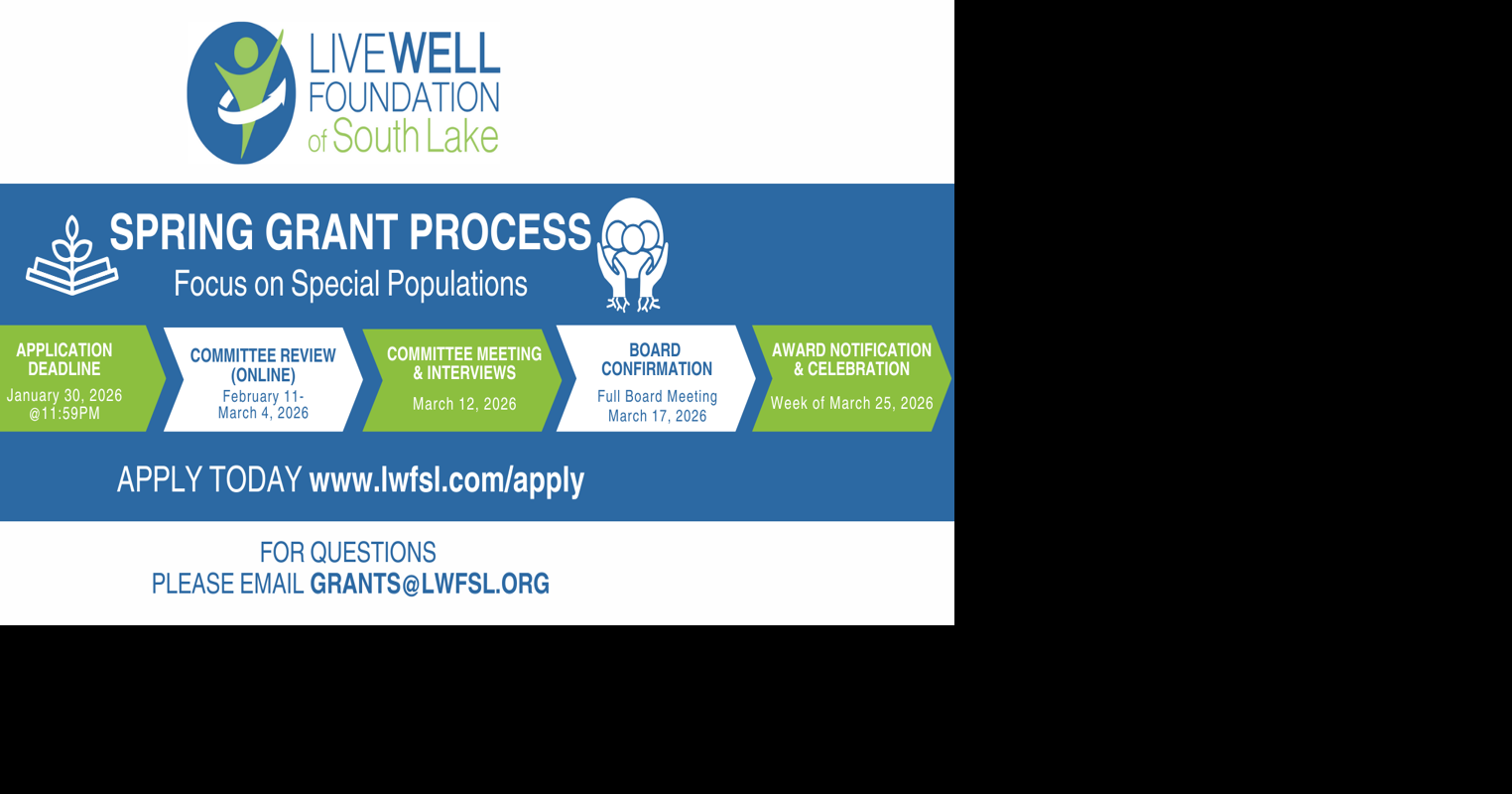 The Foundation is seeking proposals that address key areas including access to nutritious food, nutrition education and skill building, food security and stability, and equitable and sustainable food systems.Eligible applicants include 501(c)(3) nonprofit organizations serving residents within the South Lake region, including Clermont, Groveland, Mascotte, Minneola, Montverde, and surrounding areas.Applications will open the week of April 1, 2026, with a submission deadline of May 15, 2026, at 11:59 p.m. Selected applicants may be invited to participate in interviews in July, with grant awards announced the week of July 27.Organizations interested in applying must submit their proposals through the Live Well Foundation’s online Grants Portal. Additional information, eligibility requirements, and application details are available at www.LWFSL.org.