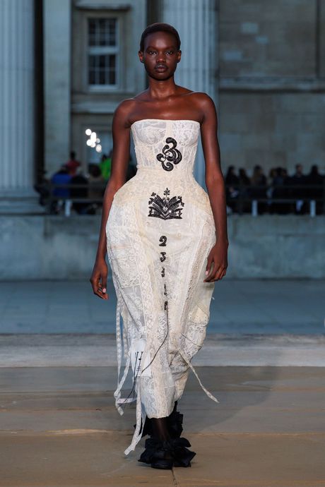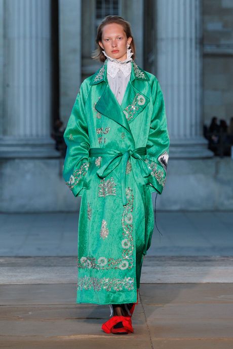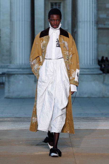 Moralioglu, who celebrates 20 years in business in 2026, simplified the court shapes, and used a rough linen that he modestly embroidered. There were also white cotton dresses (or tops with skirts) shot with metal, for a crumpled texture, and an extravagant coat in green satin. It was pure Erdem. But he ought to consider moving his shows out of the British Museum, away from artifacts.