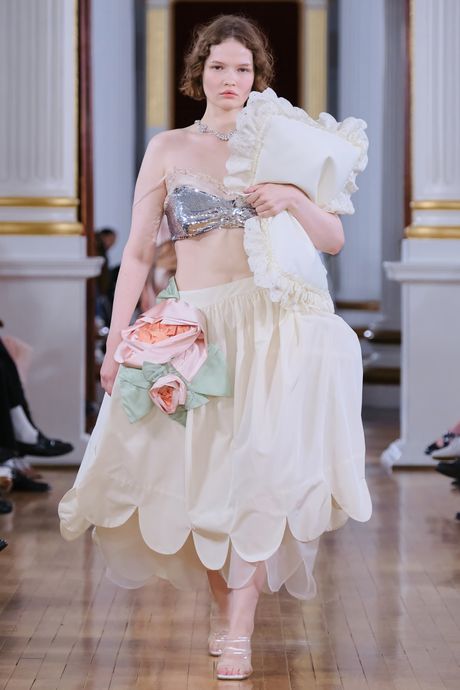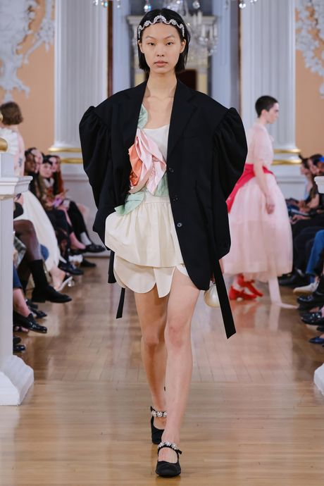 A question that Simone Rocha asked this season is, How do you make “old and fuddy” seem young and funny-delightful? The Rocha way is to take a 1950s couture frock and reduce it to a pastel crinoline and then add a sparkly silver bandeau. She also had adorable scallop-edged boxer shorts with an oversize black jacket that might have had a couture past. Rocha’s lighthearted collection was a teen dream, with plenty of separates, like flower-printed tops and clear plastic coats, and frothy dresses to inspire play. She listed Justine Kurland’s book “Girl Pictures” as a reference, but Rocha’s zest with couture trappings made the results look punk.