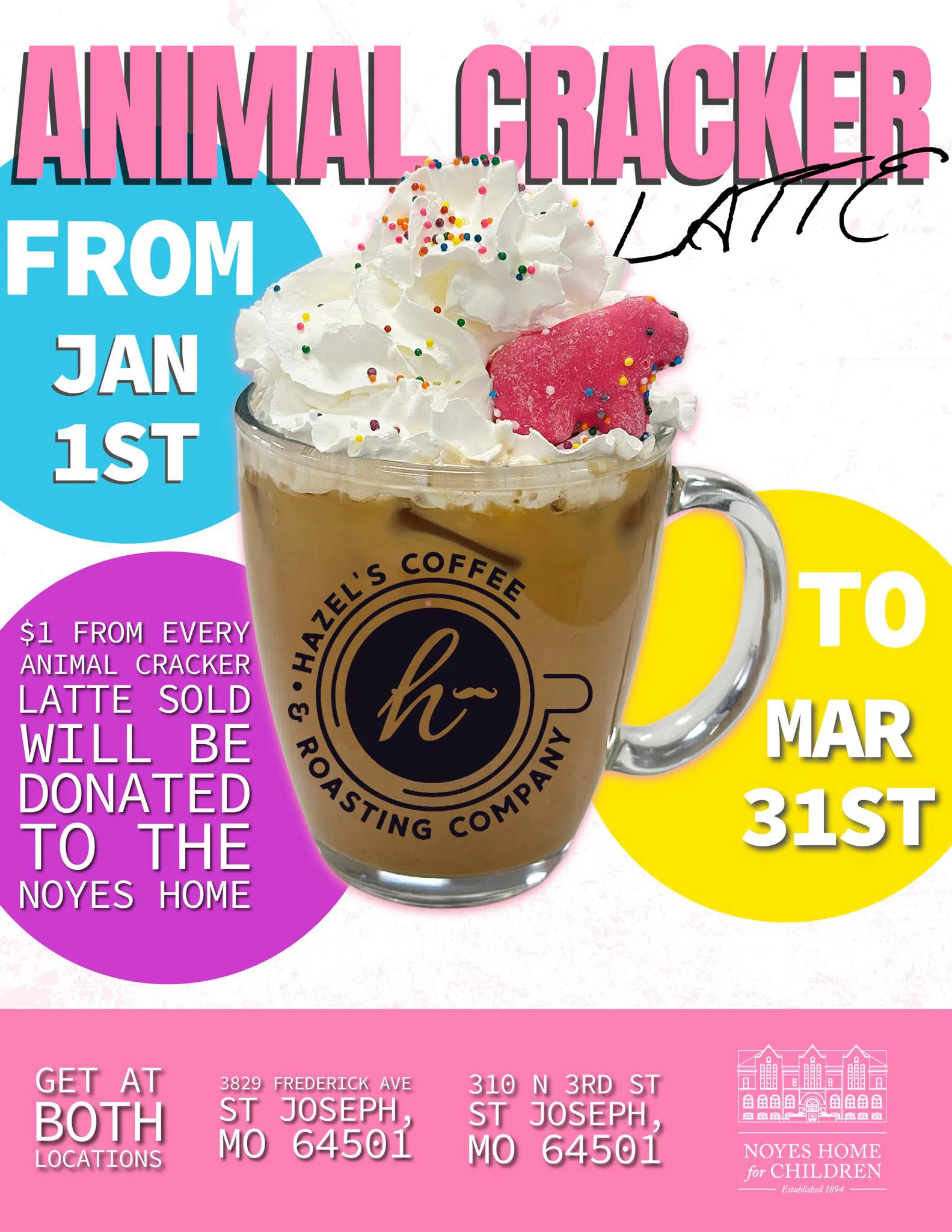 Proceeds for the Noyes Home will come from the coffee shop’s new Animal Cracker Latte.