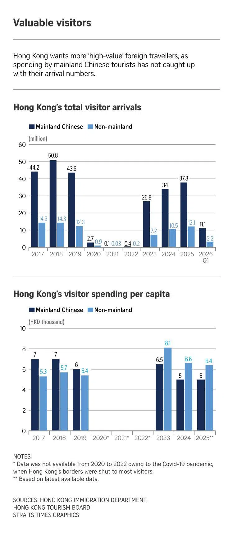 In an exclusive interview with The Straits Times, Secretary for Culture, Sports and Tourism Rosanna Law said that “high-value” visitors are those who stay overnight and bring in more economic benefits in terms of revenue from accommodations, as well as food and beverage.