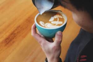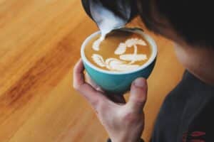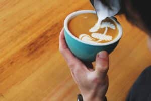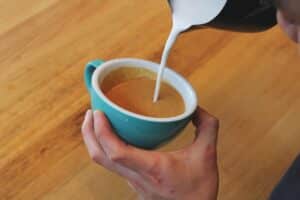 Using a 10-ounce cup, start by mixing the milk with the coffee until the cup is about a third full.