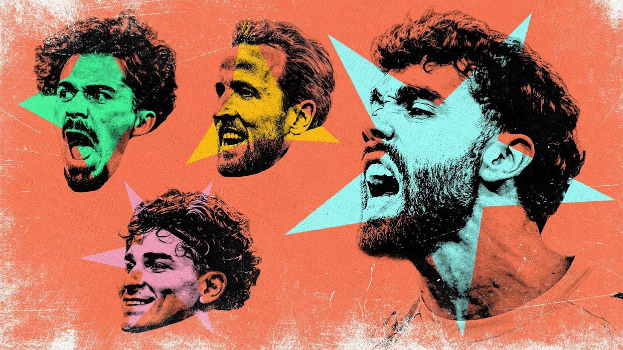 Graphic of Vitinha, Harry Kane, David Raya and Julian Alvarez