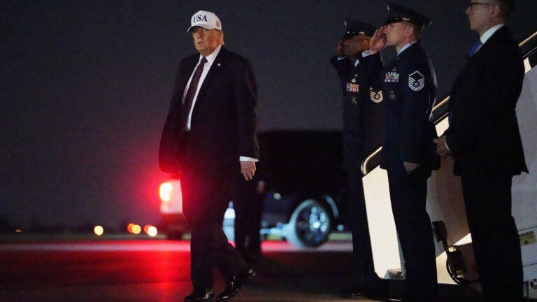 President Donald Trump disembarks Air Force One at Palm Beach International Airport in West Palm Beach, Fla., Friday, Feb. 27, 2026. (AP Photo/Matt Rourke) AP