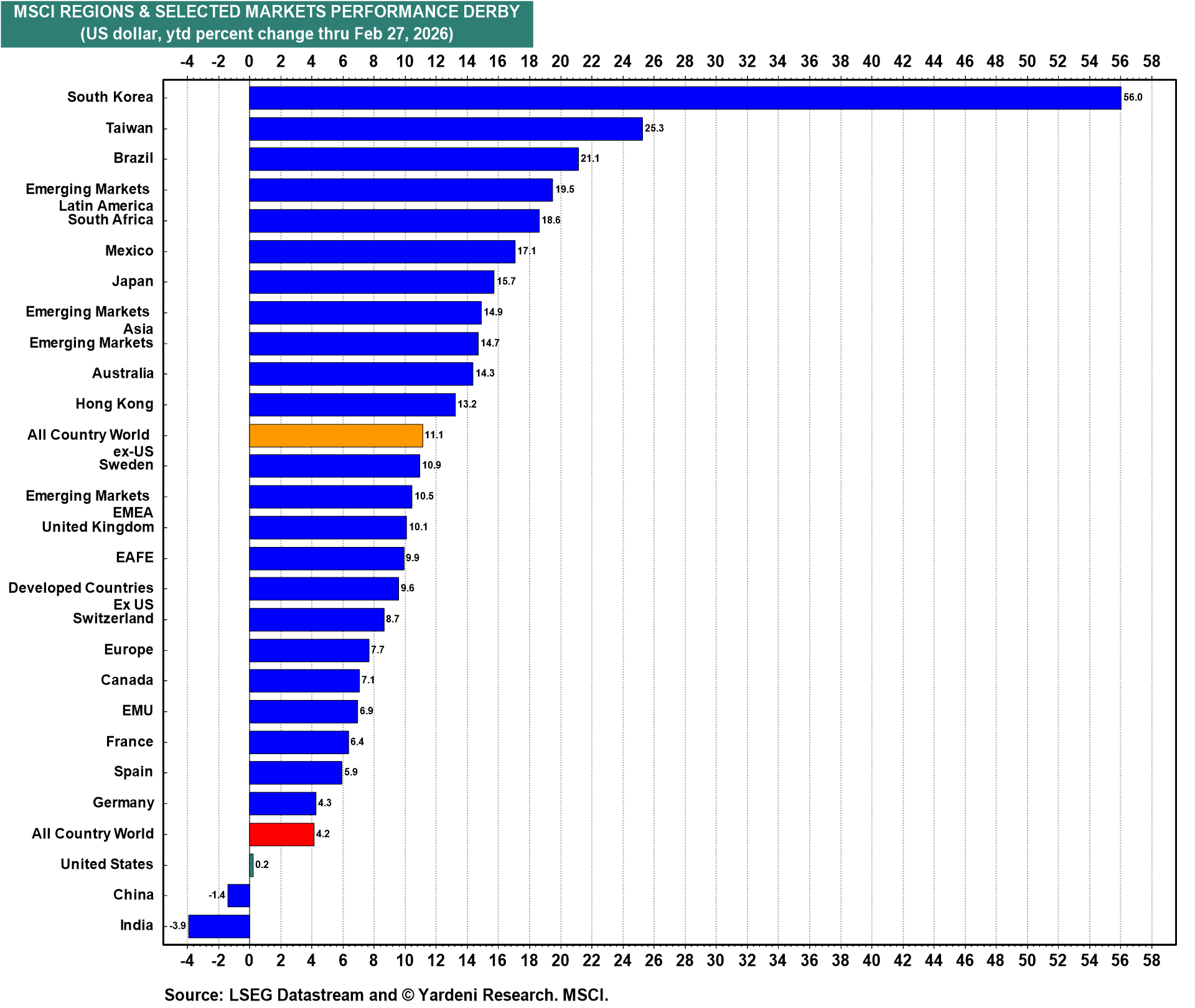 (5) Global equities. Go Global continues to outperform Stay Home so far this year as it did last year (chart).