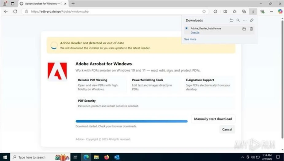 Download page masquerading Adobe Acrobat Reader.
