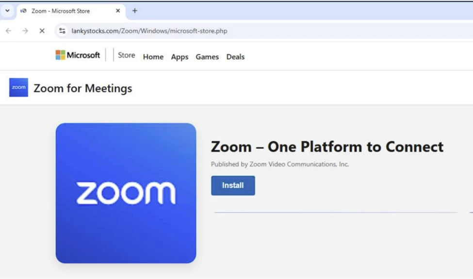 Download page masquerading Zoom.
