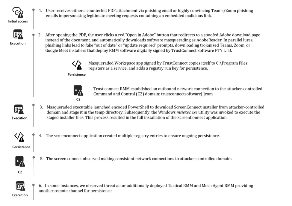 These campaigns demonstrate how familiar branding and trusted digital signatures can be abused to bypass user suspicion and gain an initial foothold in enterprise environments.