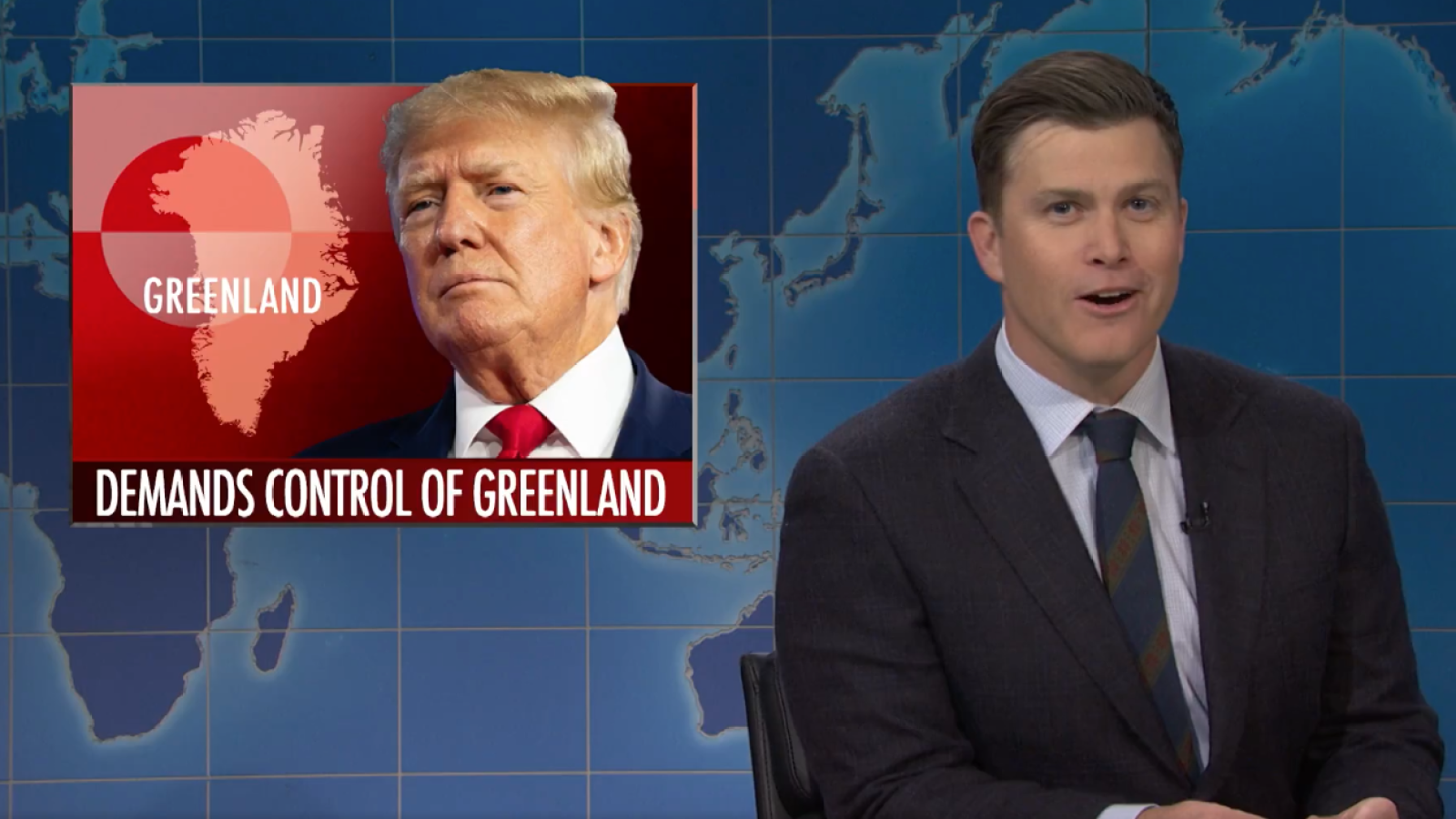 “President Trump has spent so much time stalking Greenland like an absolute psycho, he’s basically become a guy on a dating app,” co-anchor Colin Jost joked. “He’s like, ‘Hey Greenland, you look so good.’ And Greenland’s like, ‘Haha thanks.’ And Trump’s like, ‘Seriously, I need you. I’d literally give 700 billion dollars to be with you.’”