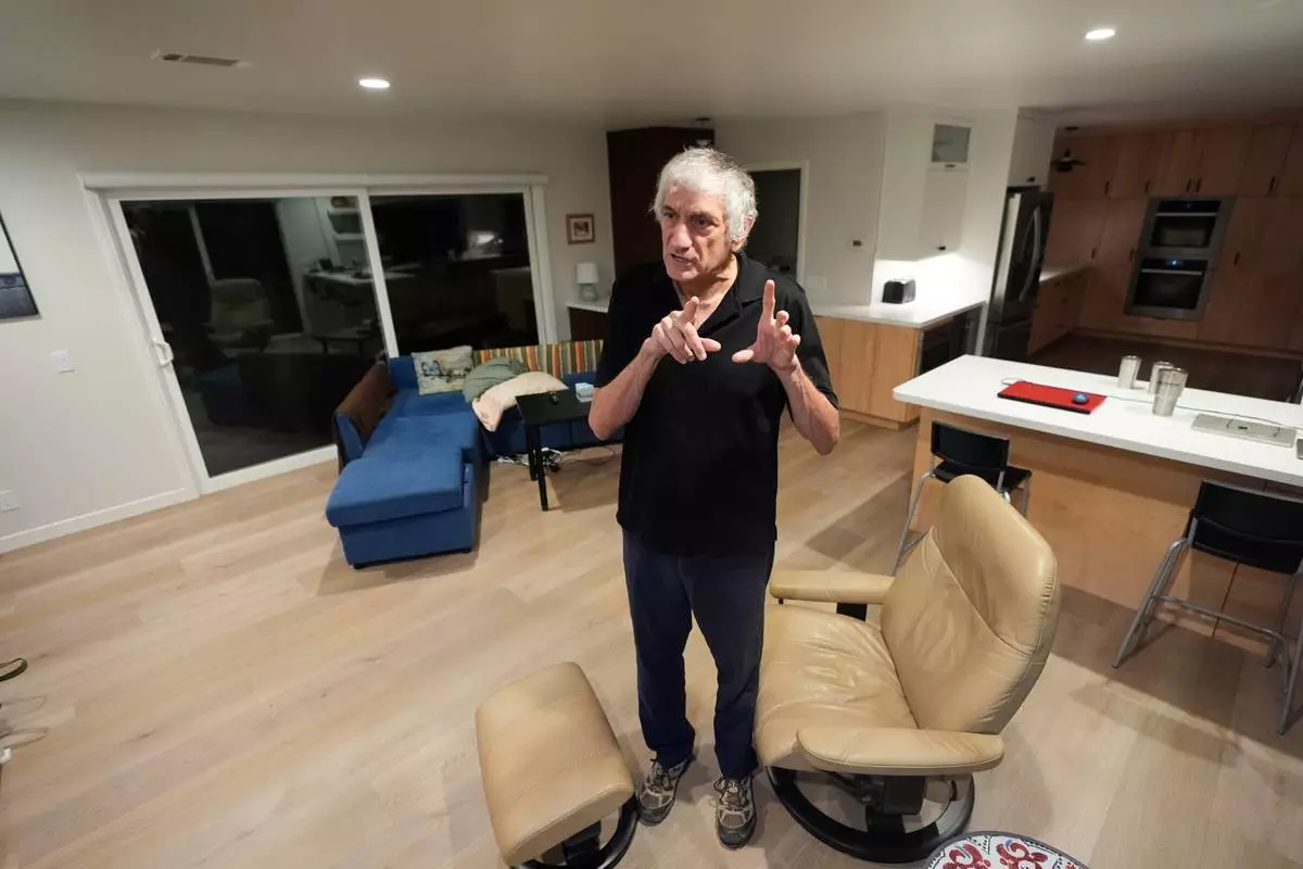 John Martinis stands in his living room after winning the Nobel Prize in Physics for his work on quantum tunneling on Tuesday, Oct. 7, 2025, in Santa Barbara, Calif. (AP Photo/Mark J. Terrill)