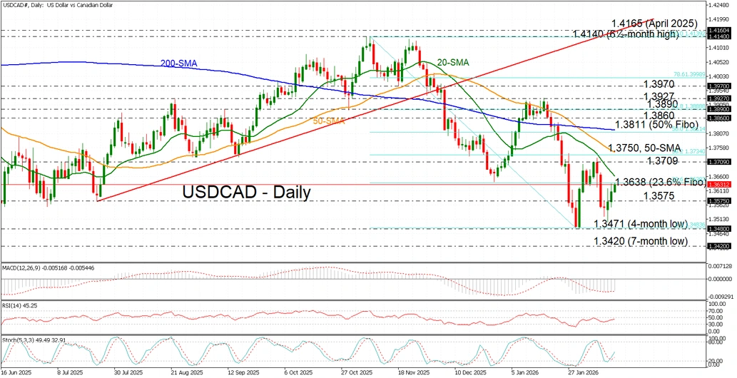 USD/CAD is extending its three‑day rebound, climbing back above 1.3600 as broad US dollar strength combines with persistent pressure on the Canadian dollar amid ongoing uncertainty and rising unease surrounding US-Canada trade relations.