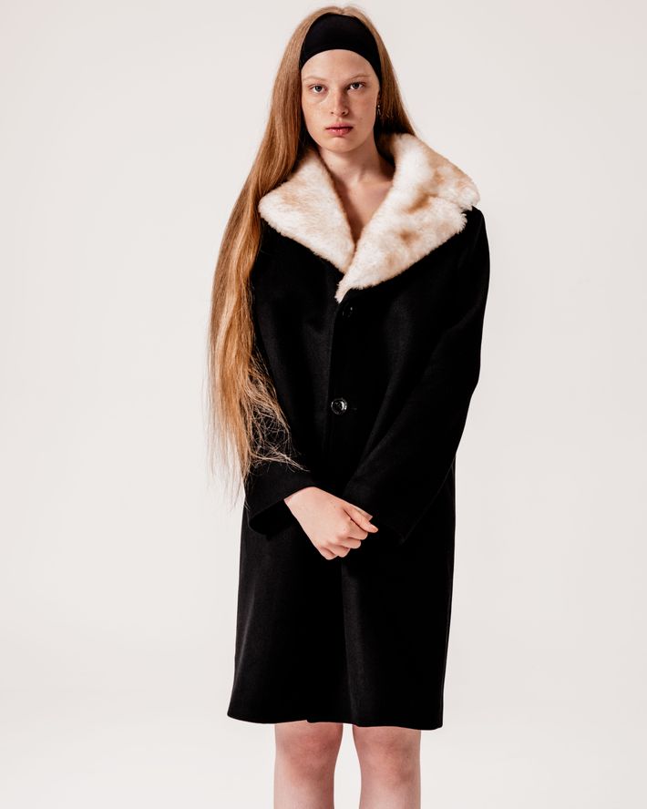 CELINE Coat, at celine.com. JESSICA MCCORMACK Earrings, at jessicamccormack.com.