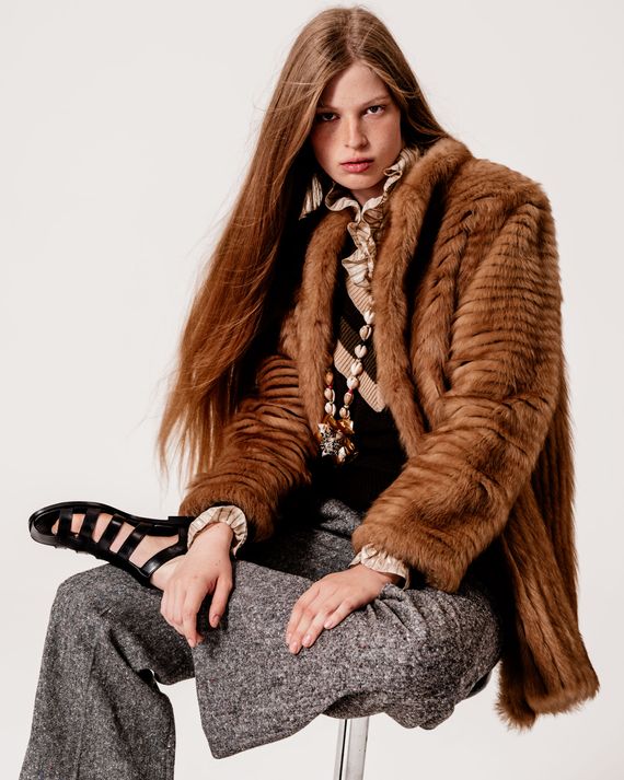 She is not, she insists, “salty” about any of this. “I don’t have a desire to be superrich,” she says. “I can afford food. I have friends, a shelter, and some expendable income, which is nice and much more fortunate than most people my age in Los Angeles.” And her newfound fame has opened other pathways. She has an agent at CAA now and is exploring modeling and influencing. The Teen Vogue cover made her feel like the former is a real possibility. “I was so nervous that I’d be perceived poorly or people would think I’m bad at it,” she says. She certainly looks the part — six feet tall with Rapunzel hair that falls well below her waist. And though she’s timid, when she walks, she struts like she’s on a runway. She’s already signed partnership deals with Boy Smells; TomBoyX, the gender-inclusive underwear line; and Wildfang, the queer clothing brand. And last month, she checked off one of the items on her bucket list: making her drag debut at the queen Pattie Gonia’s show in L.A. It was, she says, the happiest she’s been the whole year. “I felt emotions I can’t describe. It was literally fucking incredible. It was so thrilling that I cared about doing something so deeply,” she says. She is also hoping she’ll be recruited onto a game show like Traitors. Despite the introversion, “I’m an Aries. I’m very fiery,” she says. “And I’m very competitive.”