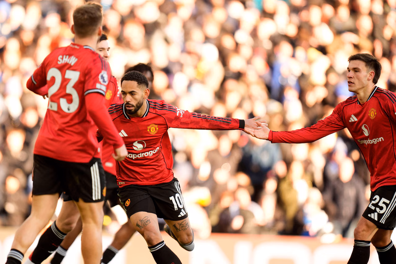Watch Manchester United’s Matheus Cunha, center, look to help guide his squad to a victory over Tottenham Hotspur on Saturday, Feb. 7. (Danny Lawson/PA via AP)AP