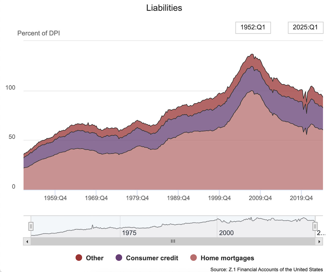 Even as exposure to financial markets has gone up, so has debt. Here’s the household liability side.
