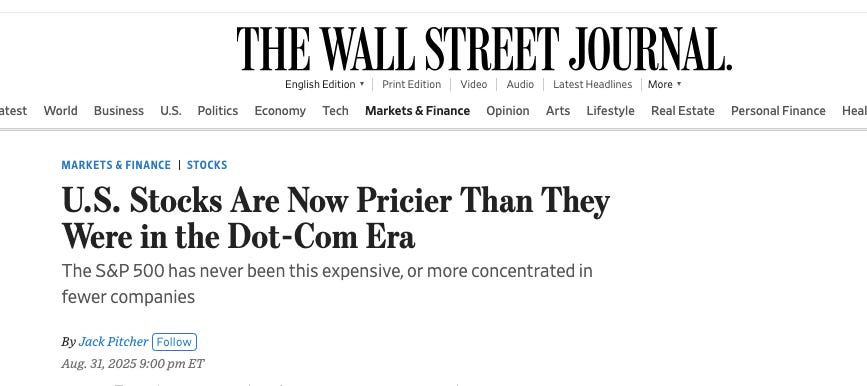 Today, we may have a similar dependency on the stock market and wealth effect. Here’s a story from last week showing stock market values are higher than they’ve ever been, measured by what investors are willing to pay for a dollar of revenue.